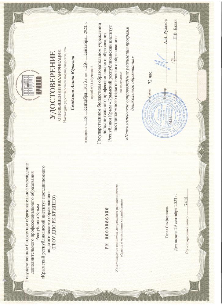 КПК | 18.09.2023г.-29.09.2023г. (72 часа, ГБОУ ДПО КРИППО) |
