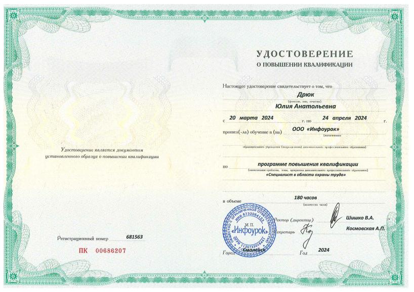 КПК | 20.03.2024г.-24.04.2024г. (180 час., ООО «Инфоурок») |