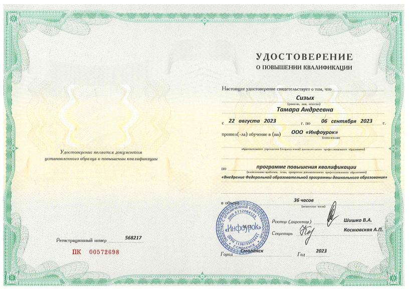 КПК по ФОП | 22.08.2023-06.09.2023 (36 ч., ООО «Инфоурок») «Внедрение ФОП ДО» |