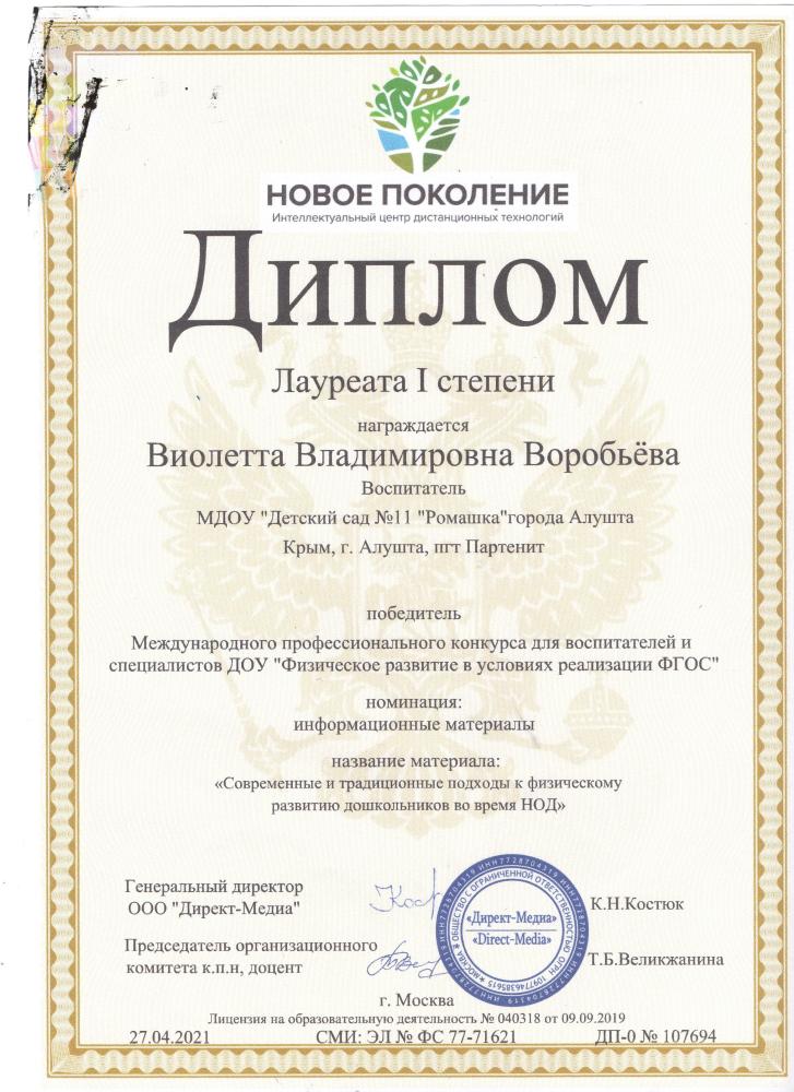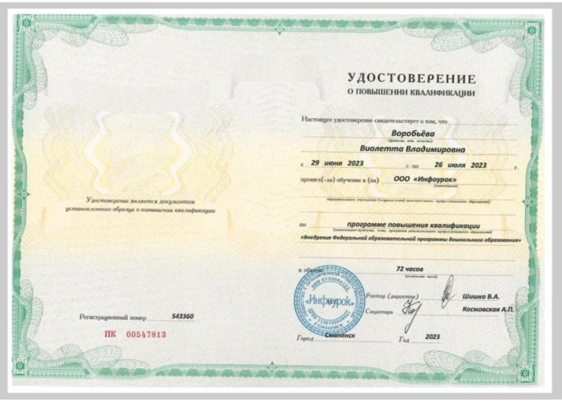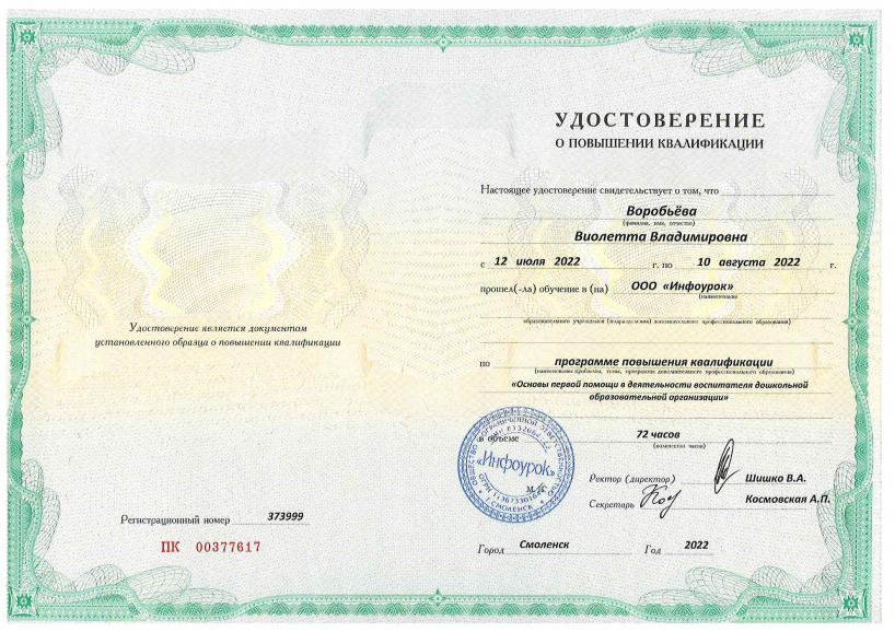 КПК | 12.07.2022г.-10.08.2022г. (108 час., ООО «Инфоурок») «Особенности развивающих методик раннего развития детей» |