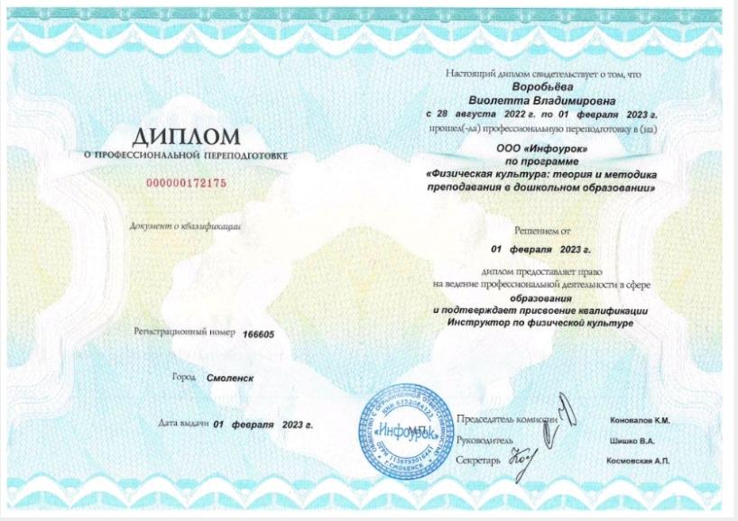 Профессиональная | 28.08.2022г.-01.02.2023г. |